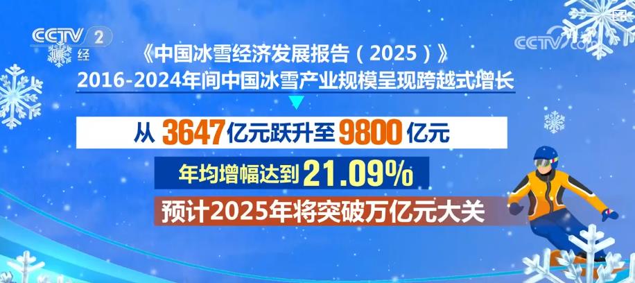 《中国冰雪经济发展报告(2025)》显示,2016—2024年间中国冰雪产业规模呈现跨越式增长,从3647亿元跃升至9800亿元,年均增幅达到21.09%,预计2025年将突破万亿元大关。